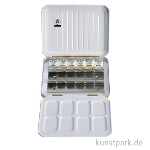 - Feinste Künstler-Aquarellfarben- 6 halbe Näpfchen im Metallkasten